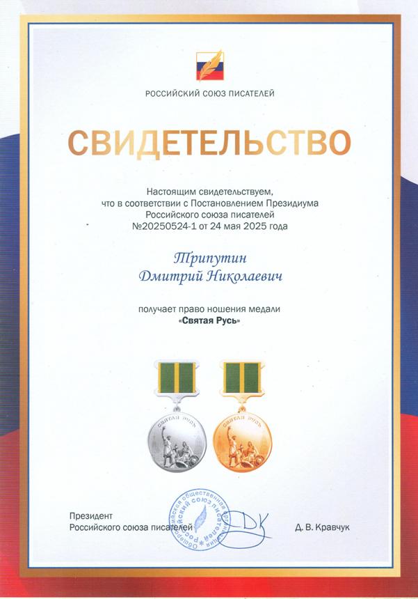 74. Трипутин, Д. Н.Рассказ: Притча, Эссе: Посвящение любимому городу// Писатель года 2022: Сборник произведений номинантов национальной литературной премии "Писатель года" в основной номинации. т. 7. – Москва : ООО "Издательство СРП", – 2023. – С.56-64.